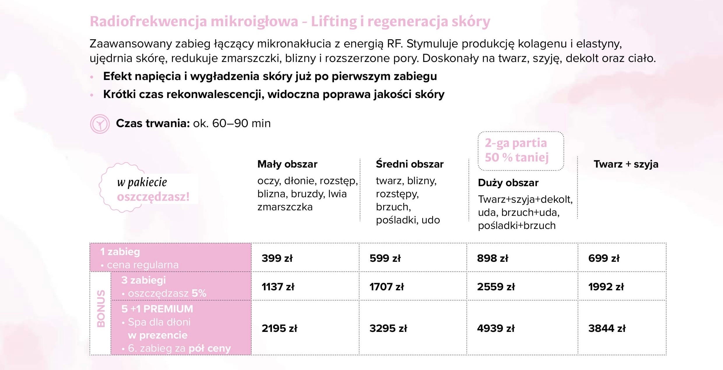 Dzięki połączeniu mikroigłowania z działaniem fali radiowej, zabieg ten oferuje efektywną stymulację skóry do regeneracji, poprawiając jej wygląd i strukturę.